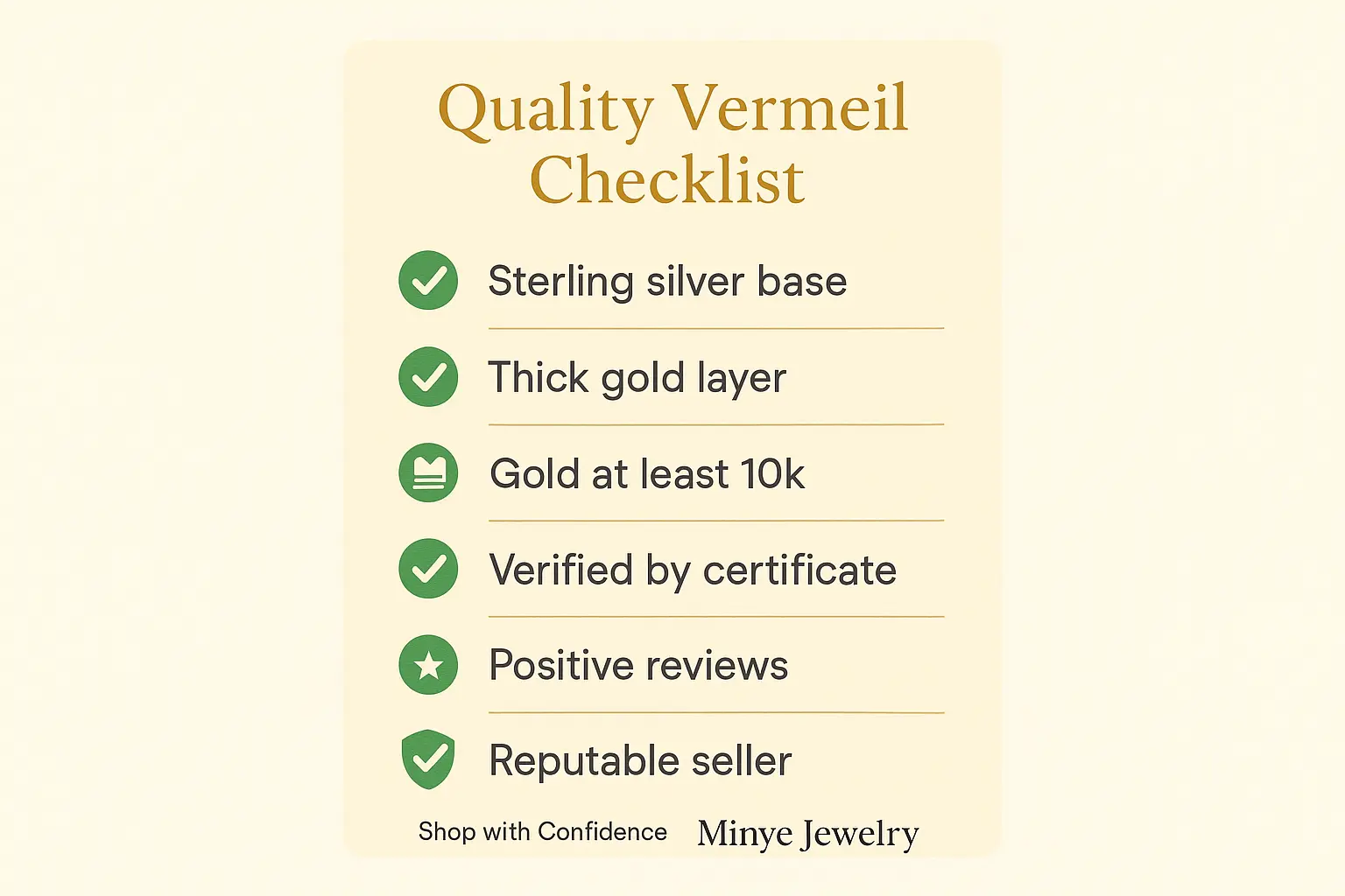 Prices dramatically below market averages warrant skepticism. While vermeil costs less than solid gold, it shouldn’t be dirt cheap. Extremely low prices often indicate corners cut somewhere—thinner plating, lower karat gold, or non-silver base metals.