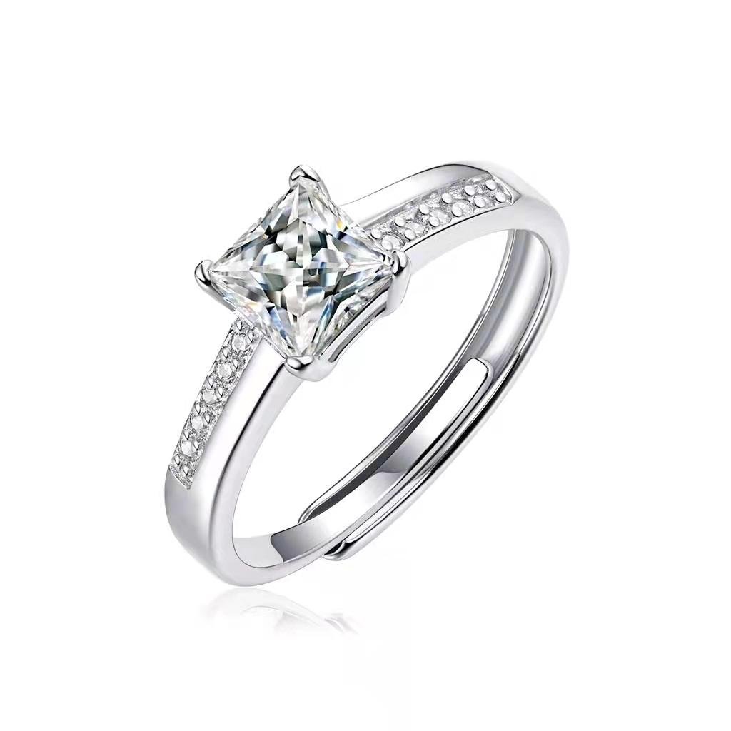 925 Silver Princess Cut Moissanite Engagement Ring – 1CT Center Stone with Paved Side Stonesg