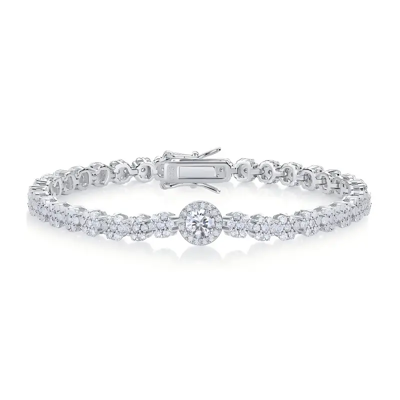 🎯 Experience refined grandeur with our Center Halo Cluster Round Cut Moissanite Silver Tennis Bracelet, where commanding central stones meet captivating halo enhancement through strategic focal stone arrangement that transforms centered geometry into magnificent statements with tennis elegance amplification. This remarkable piece establishes contemporary jewelry distinction through center-focused fusion that delivers both authentic focal recognition and overwhelming centered sparkle density, creating distinguished accessories that celebrate both focused beauty and crystalline mastery in spectacular tennis exhibitions.