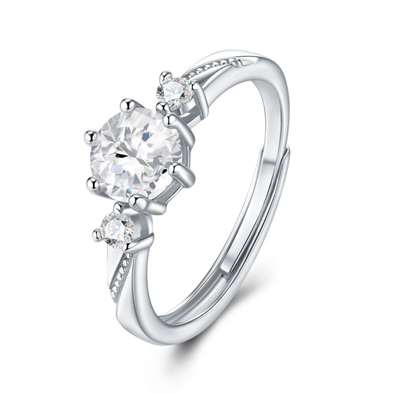 Classic 925 Silver Three Stone Round Cut Moissanite Promise Ring