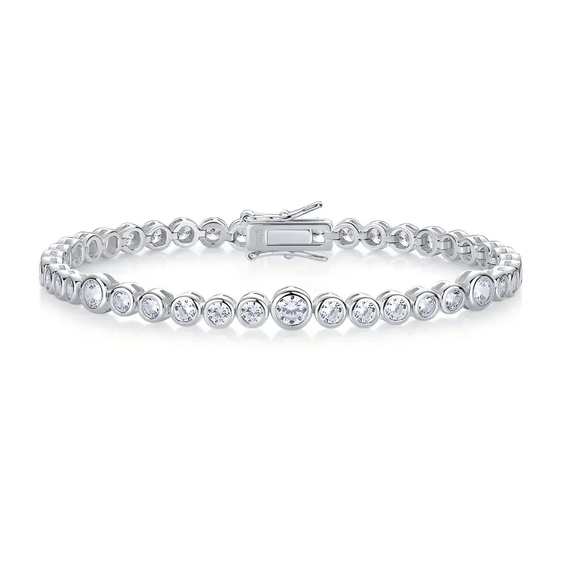 🎨 Embrace sophisticated progression with our Graduated Bezel Set Round Cut Moissanite Silver Tennis Bracelet, where elegant size transition meets secure bezel protection through strategic graduated stone arrangement that transforms proportional flow into stunning statements with tennis artistry amplification. This exquisite piece defines contemporary jewelry innovation through bezel-secured fusion that delivers both authentic graduated recognition and overwhelming transitional sparkle density, creating artistic accessories that celebrate both flowing beauty and crystalline mastery in spectacular tennis exhibitions.