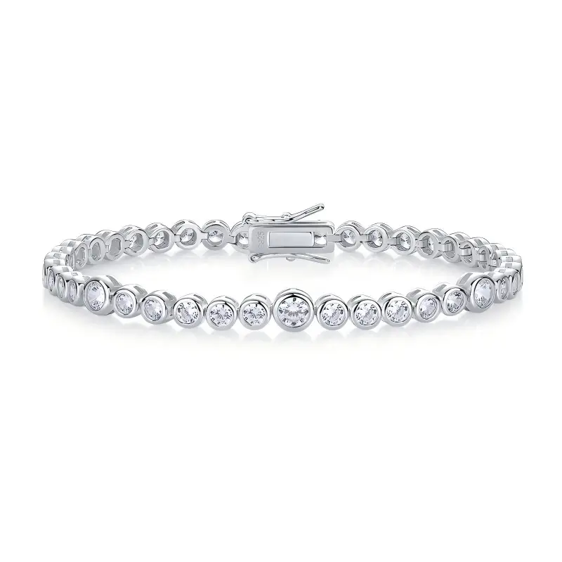 Modern Bezel Set Moissanite Silver Tennis Bracelet