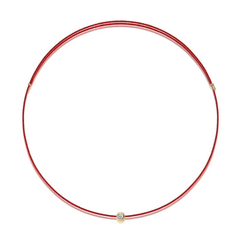 ❤️ Embrace vibrant elegance with our Red Cord Solitaire Bezel Set Round Moissanite Necklace, where bold color meets classic sophistication through rich red cord design that creates striking contrast combined with brilliant round-cut moissanite solitaire and secure bezel setting. This dynamic piece showcases minimalist jewelry artistry through clean solitaire presentation and vibrant cord construction, creating statement accessories that celebrate both colorful beauty concepts and bezel-set crystalline enhancement in captivating cord displays.
