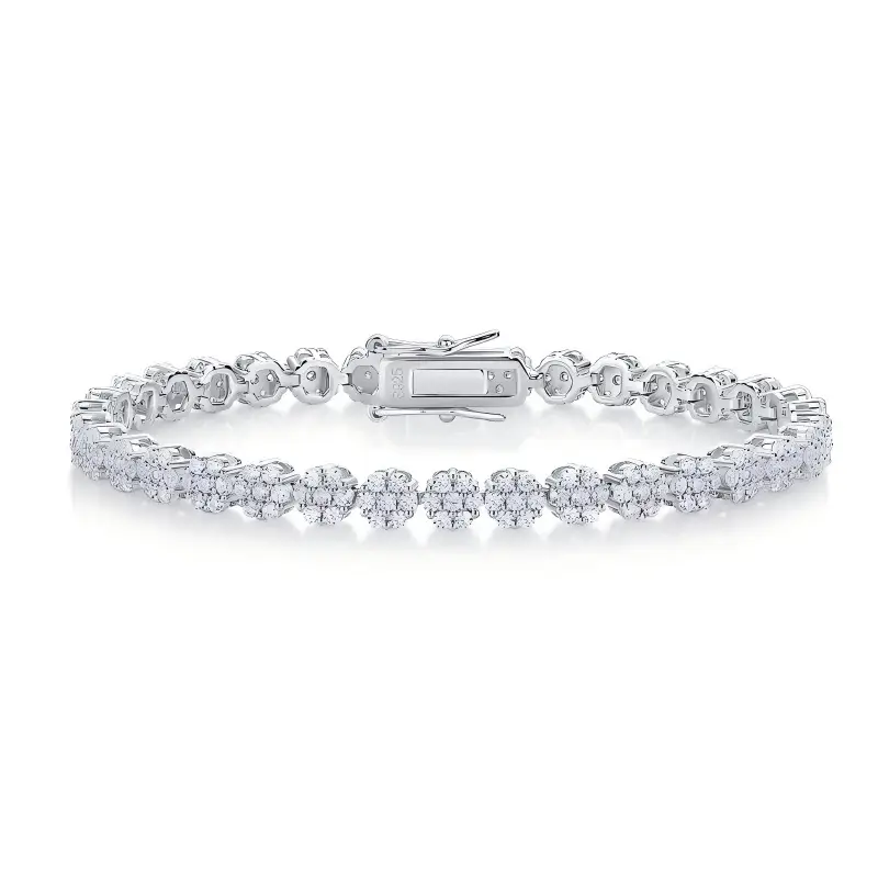 Round Cut Halo Cluster Moissanite Silver Tennis Bracelet