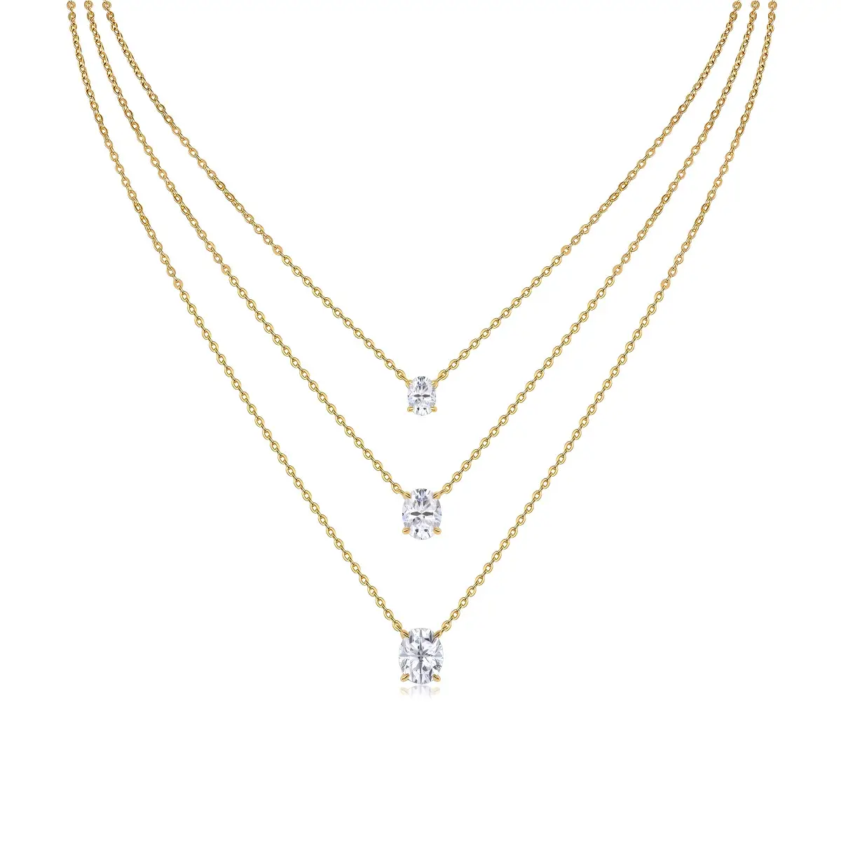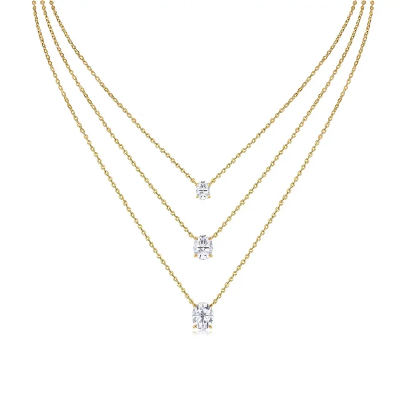 🔥 Embrace refined brilliance with our Three-Strand Layered Necklace with Graduated Oval Cut Moissanite Solitaires, where precision design meets dimensional elegance through innovative graduated technique that creates ascending brilliance combined with expertly-cut oval moissanite solitaires and sophisticated size progression construction. This refined piece showcases graduated jewelry artistry through strategic solitaire arrangement and dimensional framework, creating luxury accessories that celebrate both oval layering concepts and solitaire-enhanced crystalline sophistication in ascending displays.